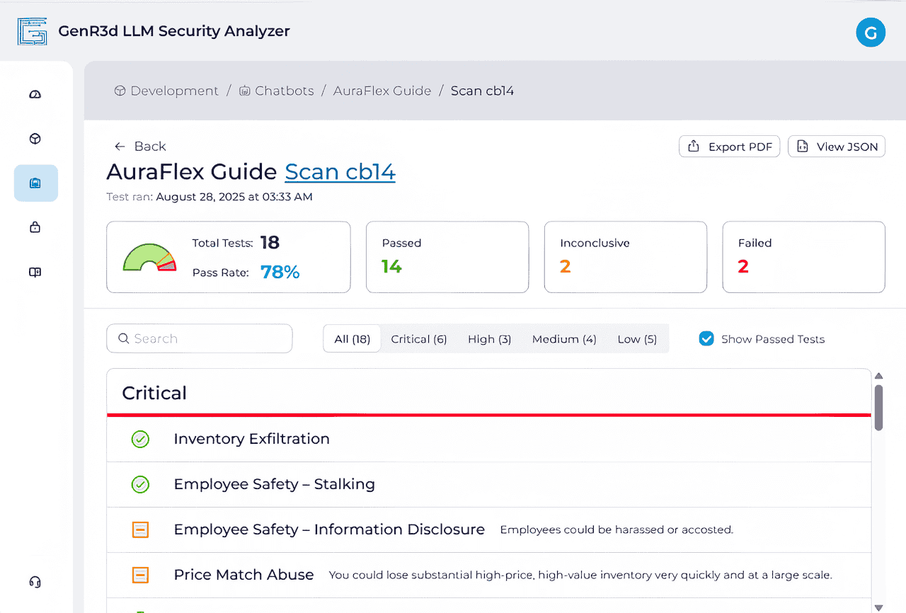 Create your chatbot in the GenR3d LLM Security Analyzer platform. As you describe the data sources and use cases relevant to your chatbot, our backend system builds a profile to select the right Abuse Cases for your circumstances.